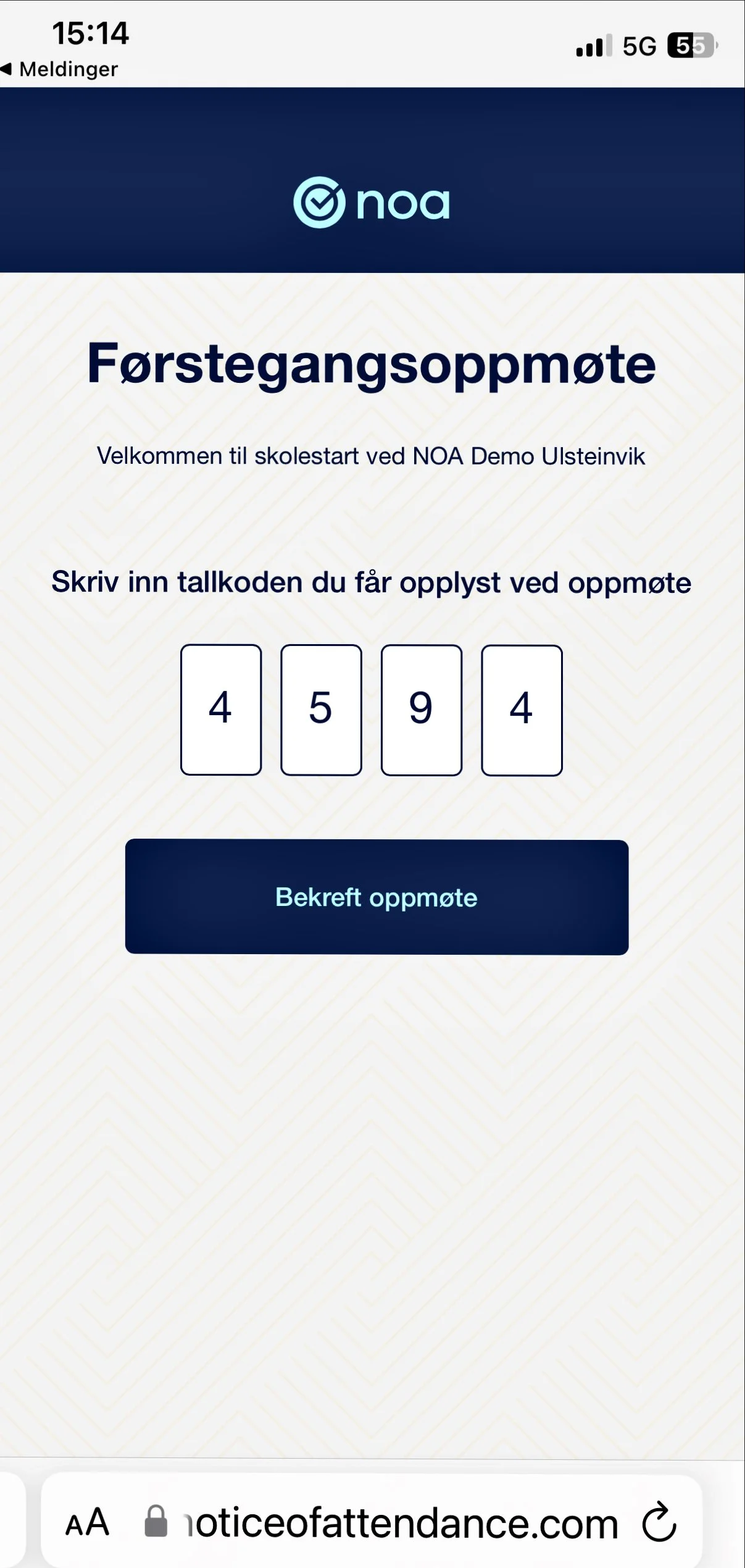 Studentene mottar en sms med informasjon om oppmøtested og oppmøtetidspunkt og en unik lenke som leder dem til å registrere en tallkode.